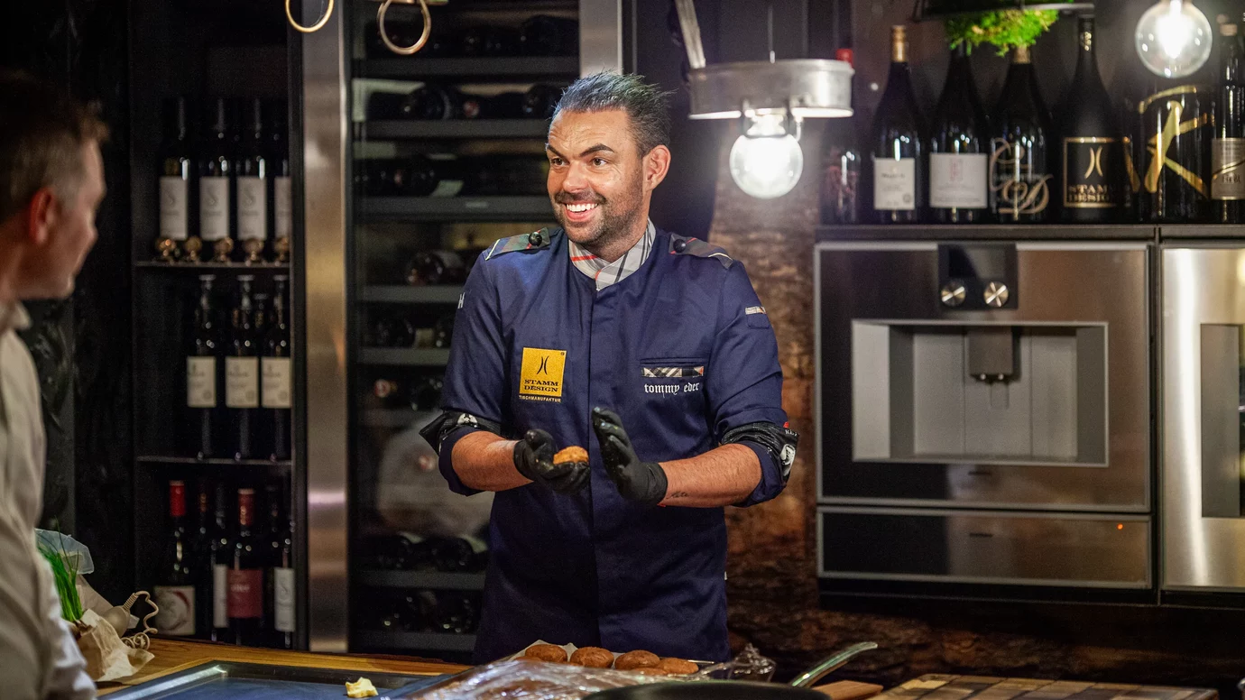 Im Sommer 2018 entstand die Idee, gemeinsam mit der Firma Kirchmair „alles wohnen“ aus St. Johann in Tirol einem 300 Jahre alten Eichenstamm eine Kochhaube zu verleihen: Diese einzigartige Baumküche setzt den Anfang unseres „Genussräumchens“. Ursprünglich war es als Schauraum vorgesehen. Jetzt öffnet es die Türen für Jedermann. Mit dem neu errichteten Genussräumchen inkl. origineller Schauküche bieten wir Ihnen eine filmreife Kulisse für Gourmetveranstaltungen auf höchstem Niveau. Kulinarische Festspiele, immer begleitet mit erlesenen Weinen unseres Winzerfreundes Stefan Pratsch aus dem Weinviertel. Edle Designerstücke aus der Manufaktur Stammdesign sorgen für ein stimmiges Ambiente, das mit originellen Wohn-Accessoires ergänzt wird. Das Genussräumchen ist ein Ort für inspirierende Begegnungen, kulinarische Gaumenfreuden und stilvolle Lebensart. Wir freuen uns auf Sie!