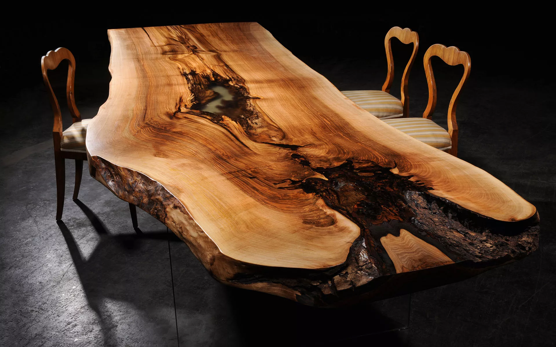 Was wir machen, ist nichts Anderes als Natur - in ihrer ganz urwüchsigen Form - so gut zu bewahren wie nur möglich. Wir gestalten unser Holz nicht, denn jedem Stamm ist von Natur aus vorgegeben was für ein Objekt schlussendlich daraus wird. Deswegen arbeiten wir in unserer Produktion schonend mit den Bäumen die zu uns kommen. Nur mit Sorgfalt, Handwerkskunst, und Materialkenntniss kann Perfektion bei jedem Stammdesign Möbelstück garantiert werden.